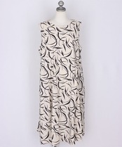 綿100%ペイント風プリントタックノースリーブAラインワンピース 33-0388